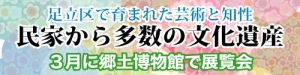 江戸時代に活躍した琳派の画家・酒井抱一や文人画家・谷文晁。彼らが残した絵画などの数々の貴重な資料が、区内で見つかった。長い時を超えて、代々その家で大切に守られ伝えられてきたそれらは、芸術的な価値に加えて当時の文化の発展を知ることのできる、まさに足立区の宝でもある。