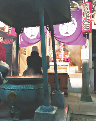 ◆勝専寺の「えんま開き」に大勢の人1月15日(金)、16日(土)に千住2丁目にある勝専寺(水野了雅住職)で「えんま開き」が行われた。山門から旧日光街道にかけて、じゃがバターや射的など多数の露天が並び、参拝の前後に楽しむ大勢の家族連れで賑わった。同寺は千住で最も古いお寺(1260年草創)で、山門の色から「赤門寺」の名で親しまれている浄土宗の古刹。山門左横の「えんま堂」に、えんま大王の坐像(区登録文化財)があり、1月と7月の15、16日を「開帳日」として参拝することができる。えんま様にお参りすると日頃の罪を許してもらえるほか、喉の病気にご利益があると伝えられている。
