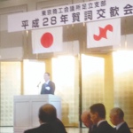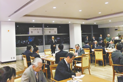 ◆足立区体育協会・新年賀詞交歓会開催 「ジュニア育成の方策を考えよう!」(公財)足立区体育協会(中田裕康会長)の新年賀詞交歓会が、1月22日(金)夜、区役所14階にあるレストラン「メヒコ」で開かれ、加盟36団体の代表者ら約80人が新年の決意を新たにした。昨年6月に新会長に就任した中田会長は「あちこち現場を回って、各団体とも大勢の区民を巻き込んで大会やイベントをやっているなと感じた。体協は、各加盟団体の組織力がないと成り立ちません。皆さんの力で支えていただきたい」と訴えた(写真)。近藤やよい区長、高山のぶゆき議長ら来賓の挨拶の後、参加者は乾杯し、親しく懇談した。