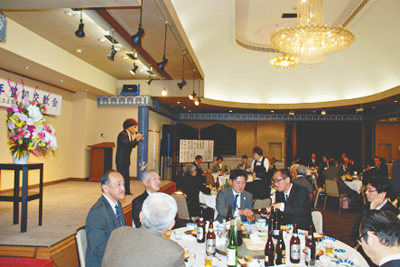 ◆足立区商連が賀詞交歓会1月26日(火)、綾瀬にある万来舘で足立区商店街振興組合(足立義夫理事長)の新年賀詞交歓会が行われ、加盟52商店街から理事長や役員、来賓の近藤区長、高山議長、自民党から共産党までの都・区議らを含め、約115人が出席。まず、足立理事長が「昨年のプレミアム商品券発売の時の反省を踏まえながら、街の活性化のために商店街は頑張りたい」と挨拶。近藤区長は「今年も、皆さんの要望を良く聞き個店にも目配りした施策を実施したい」と話した。遠藤章副理事長の乾杯の音頭の後、参加者は親しく懇談。最後に商店街などが提供する商品が来賓を含め参加者全員に当たる「お楽しみ会」(抽選会)が行われ、盛り上がった。