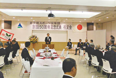 「多くの青少年にスポーツの喜びを」のスローガンで活動してきた足立区スポーツ少年団(馬場信男本部長)が今年創立50周年を迎え、記念式典、祝賀会が昨年11月28日(土)、約120人が参加して西新井ギャラクシティで開かれた。