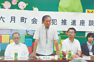 芦川会長は冒頭、「地域、警察、学校のネットワークを防犯ネットワークとして、協力の輪を強めて防犯活動、教育活動を強化していきましょう」と挨拶。座談会が約2時間にわたり熱心に行われた。