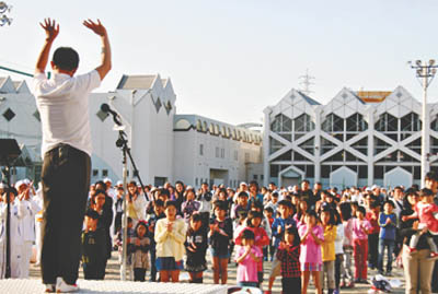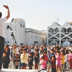 ◆東綾瀬中でNHKの特別巡回ラジオ体操開催 4月27日(日)、NHKの「ラジオ体操・みんなの体操会」が、綾瀬3丁目にある東綾瀬中学校グラウンドで開催され、約1400人が元気に体操する様子がラジオで全国中継された(写真、戸倉米子さん撮影)。これは、足立区ラジオ体操連盟(近松文子会長)が今年創立60周年を迎えたことから、そのお祝いとして26年度の第1回の特別巡回となったもの。「体操会」は午前6時から始まり、6時半から全国中継がスタート。約10分間だったが、足立区民の元気な体操姿が全国にラジオで流れた。