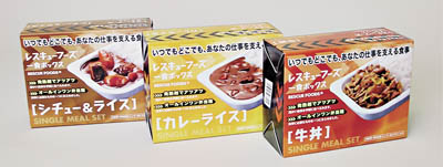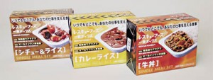 同社の非常食は特別なものではなく、普通においしく食べられる食事をコンセプトに製造。今までの非常食といえば乾パンが主なイメージだったが、同社のは、カレーライス(882円)や牛丼(1018円)、シチュー&ライス(913円)といった食欲のそそるものばかり。また、電気やガスが使えない災害状況でも温かく食べられる商品だ。