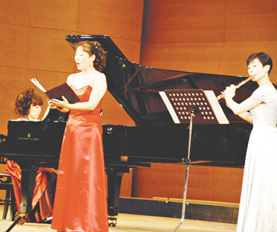 写真=フルート、ピアノ、歌のハーモニーで観客を魅了=西新井文化ホールで