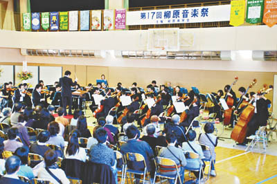 写真=上/上野浅草フィルハーモニー管弦楽団を迎えて開かれた昨年の柳原音楽祭