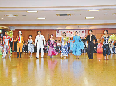 集まったのは、区内のダンス愛好家など350人。ゲストのモダンプロ元A級、柳橋慎太郎・浅見久美子組、ラテンプロA級JBDF現役チャンピオン、織田慶治・渡辺理子組、アマチュア10ダンサー、森田銀河・小和田愛子組の華麗なステップは参加者を魅了した。