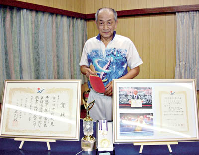 卓球の世界では、国内大会の最高峰が「全日本卓球選手権大会」。先頃行われ、女子高生チャンピオン・石川佳純(かすみ)さん誕生で話題になった「一般の部」と11月に行われる「マスターズの部」(30歳以上からの年代別)があり、中村さんは昨年11月、大阪で行われたマスターズの部の男子65歳以上で優勝したのだ。同大会では、40代の部で1回優勝しており、2回目の快挙。「これが欲しかった!」と中村さん。相手は、かつて世界選手権日本代表になったこともある西飯(にしい)徳康さんだった。1歳年上で、かつて中村さんが教えを乞うた先輩。