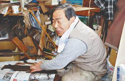 市塚さんは、この道45年。「本物の職人が作った物を長く大事に使ってもらいたい」と、屋久杉や桑など素材の木目の良さを生かし、掃除のしやすさなど使う人のことも考えて制作する。