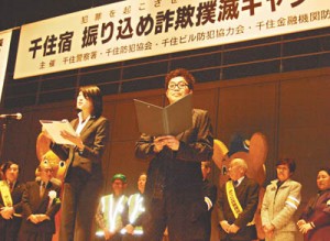 「千住宿振り込め詐欺撲滅キャンペーン」が2月21日(月)、東京芸術センター21階天空劇場で行われた。