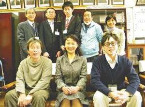 写真/講師を囲む(後列左から)関副校長、山下宏樹、佐藤貴裕、鈴木隆夫各教諭と小林郁子学年主任=加賀中で