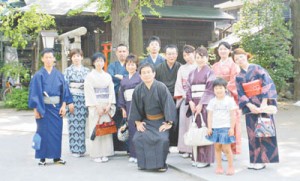 同会は、昨年の5月に、第1回「北千住の街を着物で歩く会」を開催、当日には男性5名、女性7名の有志が集まった。日頃、男性の着物姿は見慣れないため、通りすがりの方々の注目度は高く、「イキでかっこいいねぇ!」などの声がかかった。