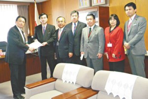 同省を訪れたのは、古性重則議長、前野和男副議長、しのはら守宏自由民主党幹事長、たきがみ明公明党幹事長、ぬかが和子日本共産党幹事長、米山やすし民主党・無所属幹事長。訪問団の要請に対し、中山政務官は以下の回答。