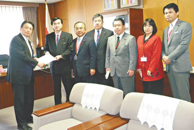 足立区議会は4月13日(水)、海江田万里・経済産業大臣、蓮舫・節電啓発等担当大臣宛ての「計画停電に関する要請書」を提出するために経済産業省を訪問。中山義活・経済産業大臣政務官と面談し、要請書を手渡した。