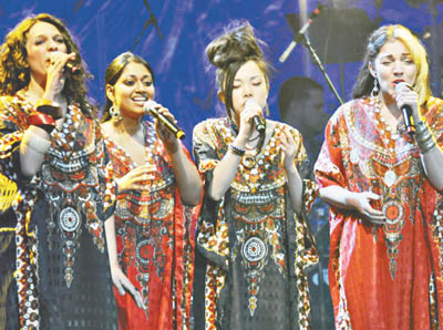 「ウーマン」はインド、イタリア、日本、アメリカ、メキシコ出身の女性ミュージシャンで結成。4人のシンガー、フルート、パーカッション、キーボード、ベースというユニークなアンサンブルで、世界各国のフォークソング、アカペラソング、数々のオリジナルソングを演奏している。