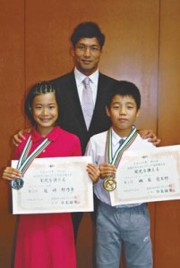 9月6日(木)には宮田氏と共に、硎屋くんは父・浩丈さんと、尾﨑さんは母・利佳さんと、区長を訪問して優勝報告を行った。