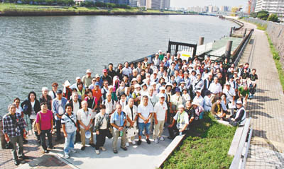 9月30日(日)、千住の常東地区町会自治会連合会(岩城武会長)が「水上バスとウォーキング」を行い、21の町会、自治会から約130人が参加した。これは、千住汐入大橋から水上バスでスカイツリーを眺めながら浅草まで行き、帰りは健康のため川沿いを歩いて帰ってくるという企画。