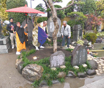 六月3丁目にある江戸の俳人・小林一茶ゆかりのお寺・炎天寺(吉野秀彦住職)の「一茶まつり」が、11月23日(金・祝)行われ、あいにくの雨を楽しむかのように、大勢の人が訪れた。