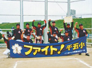 写真/優勝を決めた千五小チーム。前列左から3人目が平松主将、4人目が京谷監督