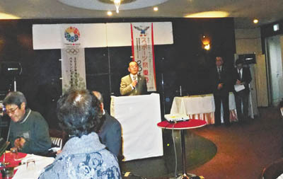 今年は「東京国体」の年。足立区では、綾瀬の東京武道館で、9月29日(日)~10月1日(火)に剣道、10月5日(土)~7日(月)に柔道の試合が行われる。開会に先立ち、区からその受け入れ準備状況の説明が行われた。挨拶に立った中村会長は「11月から高齢者、障がい者のためのスポーツボランティア制度をスタートさせることで、健康足立の創造に向けて奮闘したい。また、若者のスポーツ離れを食い止めるべく。ジュニアスポーツの発展を考えてほしい」と語った。 石川義夫副区長、渡辺ひであき議長ら来賓の挨拶の後、乾杯し、参加者は親しく懇談した。
