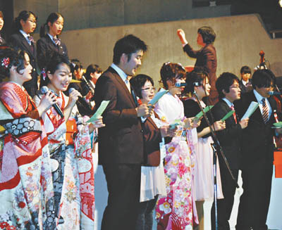 最後は東綾瀬中学校吹奏楽部の演奏で、「旅立ちの日に」を全員で合唱し、新たな一歩を踏み出した。