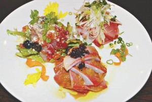 B洋風居酒屋で旬の食材を召し上れ四国最南端、高知県宿毛湾直送の新鮮魚介類が食べられるのが「下町バル 漁三郎」(栗原1‐6‐22、TEL3859・6035)だ。