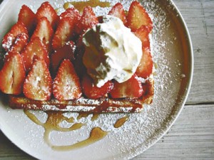 皆さんのお目当ては、お店自慢の「ワッフル」。同店の出すブリュッセルワッフルは甘さ控えめの軽い生地なので、チョコやフルーツを豪快に乗せて食べるのが特徴。定番の人気メニューは、まるまる1本のバナナを使った「バナナワッフル」(650円)。その他、季節限定メニューもオススメ。3月からは「ストロベリーワッフル」(780円)が登場。ベーグルは全品950円で、サラダ、ドリンク、ミニスイーツが付いている。