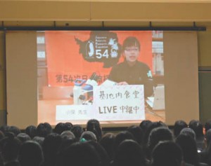 00㎞離れた南極の基地の食堂にいる小俣教諭が映し出された瞬間、生徒たちから歓声が上がった。