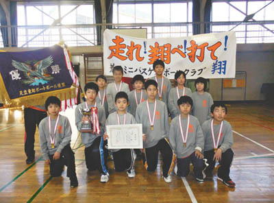 一方、男子は、さつきクラブ、チーム翔、扇MAXが各ブロックで勝ち残り、リーグ戦となったが、チーム翔がさつきクラブを53対20、扇MAXを40対14で下し、優勝。2位、3位決定戦は、扇MAXが、後半次々とシュートを決め、さつきを47対25で突き放した。