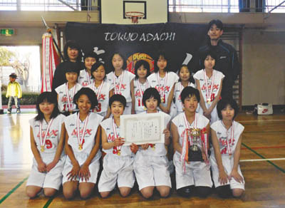 足立東部ポートボール連盟(沖山忠敏会長)の「2012年度新人戦ミニバスケットボール大会」が2月3日(日)~11日(月・祝)、男子10チーム、女子11チームが参加して行われた。