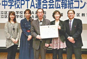 平成24年度足立区立小・中学校PTA広報紙コンクール(主催=同PTA連合会)表彰式が3月5日(火)、区役所庁舎ホールで行われた。年々制作レベルがアップする中での審査も難航・白熱し、最優秀賞は島根小と上沼田中に決定した。