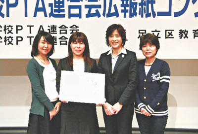 【中学校PTA】(参加31校)『最優秀賞』=上沼田、『優秀賞』=第十四、江南、『奨励賞』=入谷南、花畑、第十、青井、東綾瀬、『特別賞』部活ファイトで賞=六月、色がきれいで賞=花畑北、がんばるママ賞=第五、ていねいな取材で賞=第一