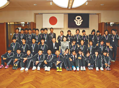 区長を表敬訪問した選手たちにはメダルと記念品が贈られた。近藤区長は「今回の経験は長い人生の中で大切な財産になると思います。壁にぶつかった時、今大会のことを思いだして乗り越えていってください」と選手たちに語りかけた。