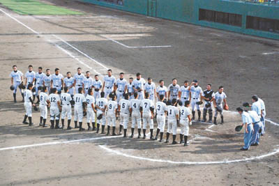 下/熱戦を終え整列する両校ナイン=江戸川区球場で