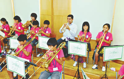 数々の国際トランペットコンクールで1位を受賞するなど輝かしい実績を持つトランペット奏者フランシスコ・フローレンスさん(31)が来日、7月27日(土)、足立ジュニア吹奏楽団(秋葉謙勇団長、48人)に音楽をプレゼントした。