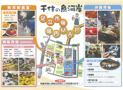 リーフレットは、足立市場受付、千住宿場町の「街の駅」などで配布中。
