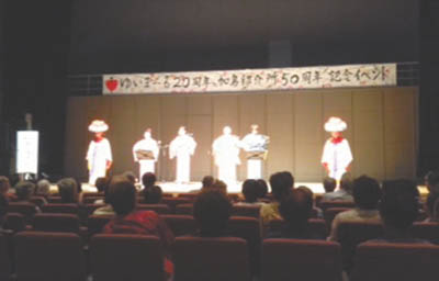 千住地域を中心に展開する介護施設「ゆいまーる」の20周年、加島看護婦家政婦紹介所の50周年を記念するイベントが、9月22日(日)、北千住にある東京芸術センター21階・天空劇場で開かれた。