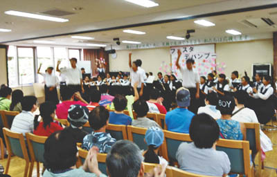 「ともに歩んだ20年、未来につなぐLove&Peace」をテーマに、これまでの歴史を振り返る記念誌が配られ、ビデオが上映されたほか、和太鼓・三線の演奏(写真)、創作ダンス、漫才、歌声のつどいなどが行われ、参加した施設利用者、家族、地域の人、関係団体など約500人が楽しんだ。「ゆいま~る」を運営する㈱トータルケアサービス加島の渋谷洋子社長は「この先のさらなる20年目指して、地域とともに歩みたいと思います」と挨拶した。