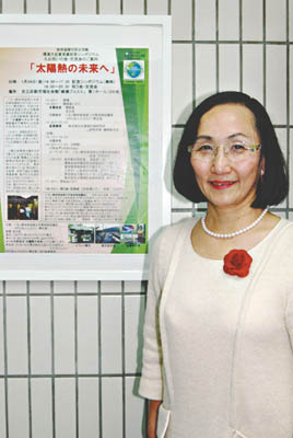 対策活動実践・普及部門「太陽熱エネルギー利用促進の下地作り」の活動が評価されたもの。東日本大震災後は、太陽熱温水器を岩手県住田町仮設住宅110戸に寄贈するなど、被災地での自然エネルギーを支援。また、太陽熱温水器キットを使っての小学生への授業などの普及活動も行っている。受賞を記念して、シンポジウム「太陽熱の未来」を、1月24日(金)、綾瀬プルミエで開催。来賓や地球環境に関心の高い約70人が参加した。