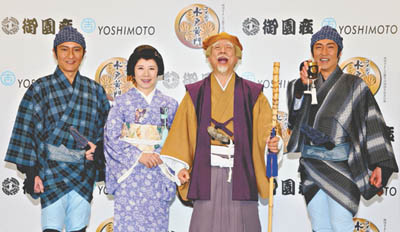 それに先駆けて1月16日(木)、吉本興業東京本部で発表会見を実施。西川きよし(水戸黄門)始め坂田利夫(旅籠の主人・三津五郎)、宮本大誠(助さん)、西村仁(格さん)、特別出演の森昌子(栗山千代)がアドリブ三昧であった大阪公演でのエピソードを披露。「毎回、新しいセリフが生まれるので緊張感溢れる毎日」と言う宮本・西村に、司会の石田靖が「新しいセリフと言うより、西川さんがセリフを忘れんのとちゃいますか?」と向けると、「忘れんのは坂田や。突然2ページから9ページに行ったりするんやもん」と西川。坂田もすかさず「はよ終わったって喜んどったやないか。あんたはよう名前を忘れたなぁ。助さんを『格さん、格さん』と呼んで」とマスコミの大爆笑を誘った。宮本・西村に、西川は「あんたらは皆のセーフティーネットや。うちらがセリフを飛ばしたり忘れても、二人が元に戻してくれる」とさすがの気遣い。