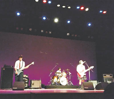 開場午後2時半、開演3時。入場無料。演奏は、1曲6分以内で2曲12分。審査員は、元グループサウンズ・ブルーコメッツメンバーの高橋健二氏ほか。写真上/昨年優勝した足立新田高校のバンド「Purple Frames」の演奏=西新井文化ホールで