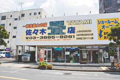 花畑4丁目バス停の目の前に、大きなガラス張りのショールームがある。天然い草の香りとショールームの中で作業する人たち。ここは創業50年の畳屋「佐々木畳店」(花畑3-34-1、TEL3885・9261)だ。