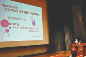 阪神・淡路大震災から20年目となった1月17日(土)、足立区防災区民組織合同研修会が庁舎ホールで開かれた。