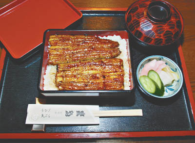 同店は、うなぎ料理を中心とした和食メニューを提供している。愛知県三河産が中心のうなぎと、新潟県の自家製米「コシヒカリ」を使用した「うな重」(税込3280円)が看板メニューだ。その他、「うなぎ骨せんべい」(同350円)や「松茸土瓶蒸し」(同980円)も一緒にいかが。