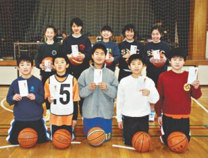 また、恒例のフリースロー大会も行われ、男女各5人の入賞者には図書券が手渡された。入賞者は以下の通り(敬称略)。