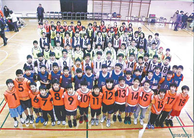 3月15日(日)、渕江小学校体育館で、足立東部ポートボール連盟(沖山忠敏会長)主催のミニバスケット「畔上記念交歓大会」が行われ、6年生98人が参加して盛り上がった。