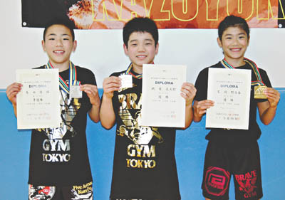 尾﨑野乃香さん(千住仲町在住)は女子の部40㎏で優勝。硎屋亮太郎くん(千住元町在住)は小学生の部6年45㎏で優勝。烏田将伍くん(千住在住)は小学生の部42㎏で準優勝。3人とも、ジム「Brave」(宮田和幸主宰/千住3)の所属で、日々鍛錬している。