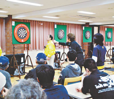 途中、全日本代表として活躍するプロの選手もゲストで登場。参加者は、うまい点の取り方や、刺さった矢が落ちないテクニックなどを聞いたりしていた。