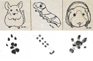 その名の通り生き物の足型のスタンプだが、ひと味違う。生き物は3種類で、モルモット、チンチラ、そしてアゲハの幼虫、つまり、世にも珍しいイモムシの足跡なのである。しかも直接足型を取った実物大で、リアルな仕上がりになっている。