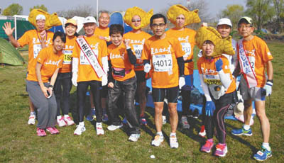 2年前にギランバレー症候群を患い、一時は社会復帰を諦めたが、2カ月半のリハビリで快復。「マラソンをやってたおかげで快復が早かった」。昨年から10㎞の練習を始め、「ラストラン。お土産だと思って」今回の参加を決めた。フルマラソンは10年ぶり。「1人は心配だから見守り隊を作った」と大野さん。この日のために作ったオレンジ色のおそろいのTシャツで、メンバー有志が小沢さんを囲んで伴走。「タイ(隊)ヤキ」の被りもののメンバーも。小沢さんは「私が主役です82才」のたすきをつけていたが、「タイヤキが人気で、(沿道の応援は)誰も私に声をかけなかった」と笑う。長いマラソン人生の中で、「走ることで、いろんなことを教わった。人間って競争するものだと悟った。人生の縮図。最初は調子よくても脱落したり、ドラマがいっぱいある」。